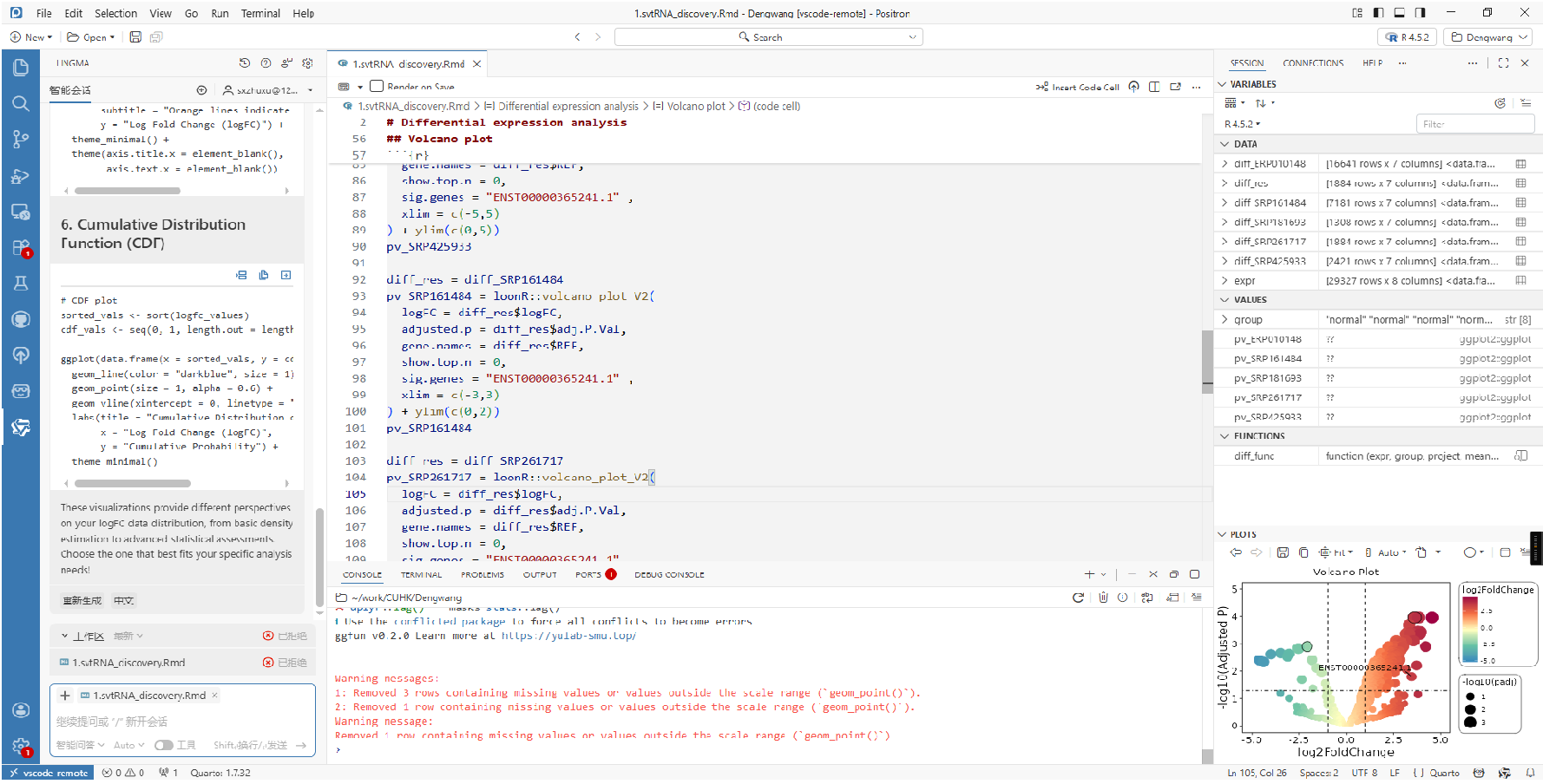 后来Rstudio的公司改名为Positron,又出了Positron IDE,运行R和python比vscode 方便,比如图片展示,变量查看,接近Rstudio,但不支持remote ssh,意味着我不能用远程服务器上的R。所以尝试了下就不在使用。